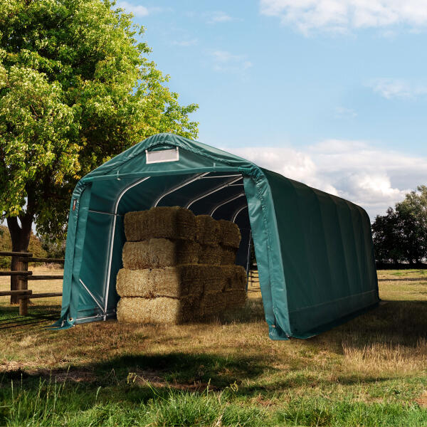 TOOLPORT Állattartó sátor, 3, 3x7, 2m, PVC ponyva, sötét zöld, rögzítés puha talajhoz Takarmánytároló sátor, Mobil istálló, Szénatároló sátor - (99549)