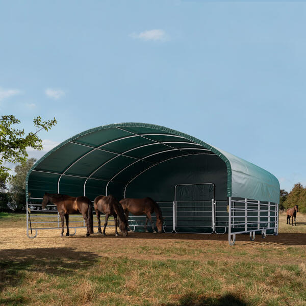 TOOLPORT Állattartó sátor, 8x8m, PVC ponyva, sötét zöld, rögzítés kemény talajhoz Takarmánytároló sátor, Mobil istálló, Szénatároló sátor - (330621)