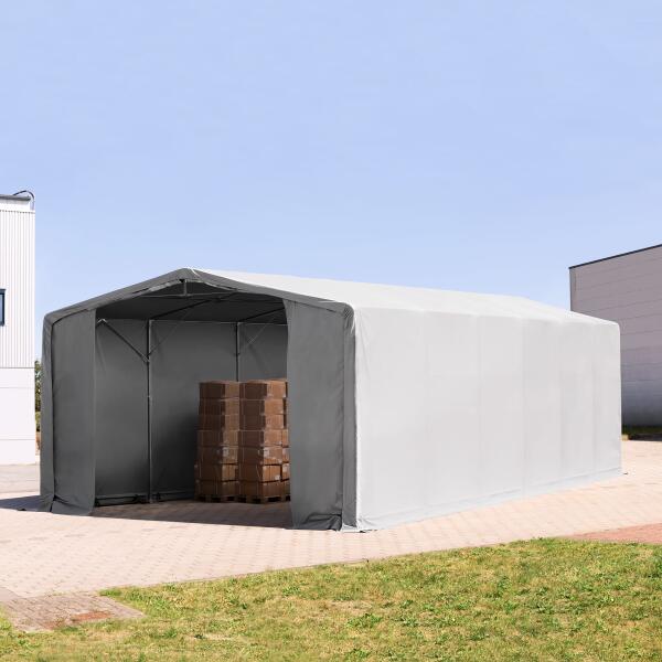 TOOLPORT Ponyva csarnok, 8x12m, PRIMEtex-ponyva, szürke, statikai megerősítéssel (föld alap) Ponyva raktár - (93996)